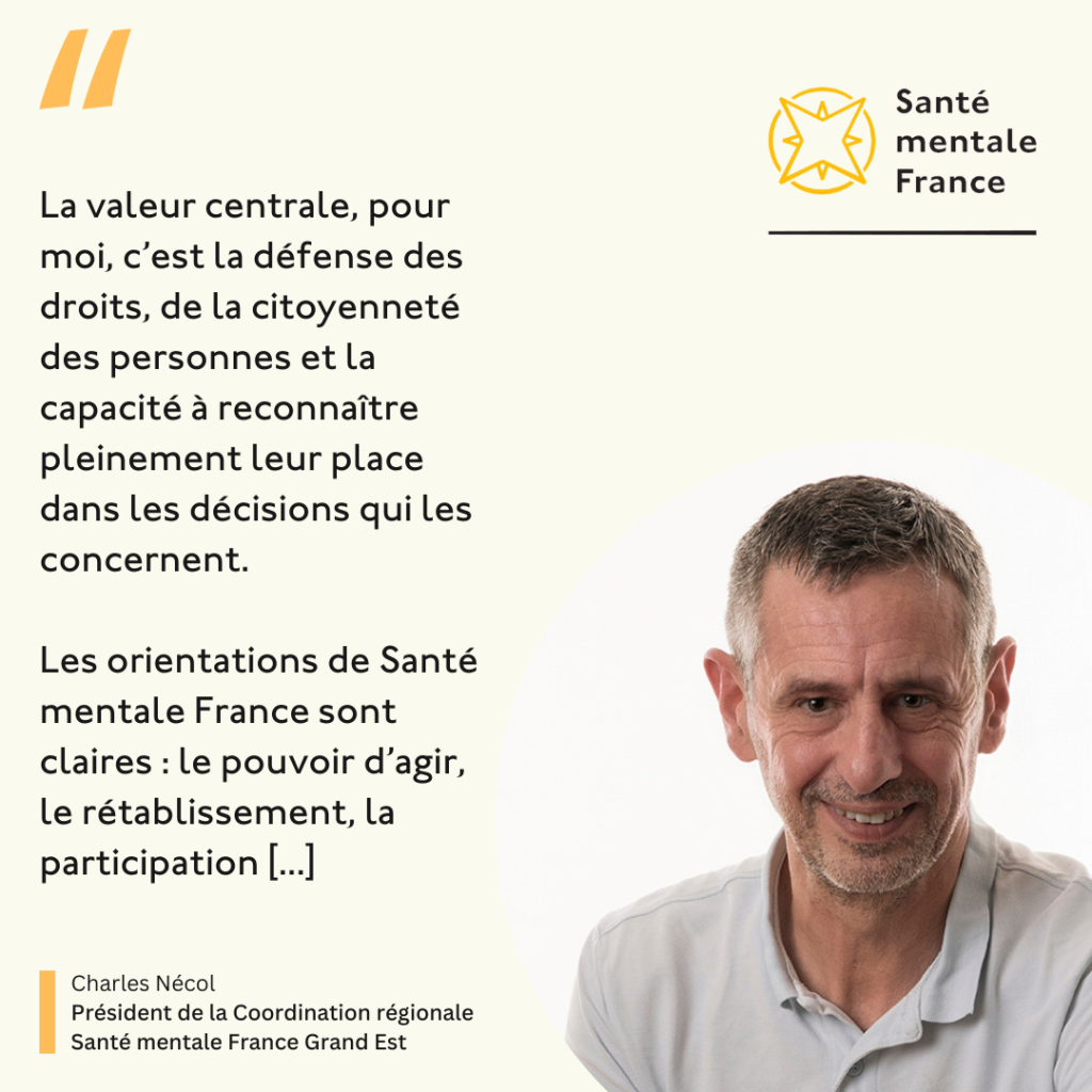 Charles : Depuis 2017, je suis président de la coordination Santé mentale France Grand Est.