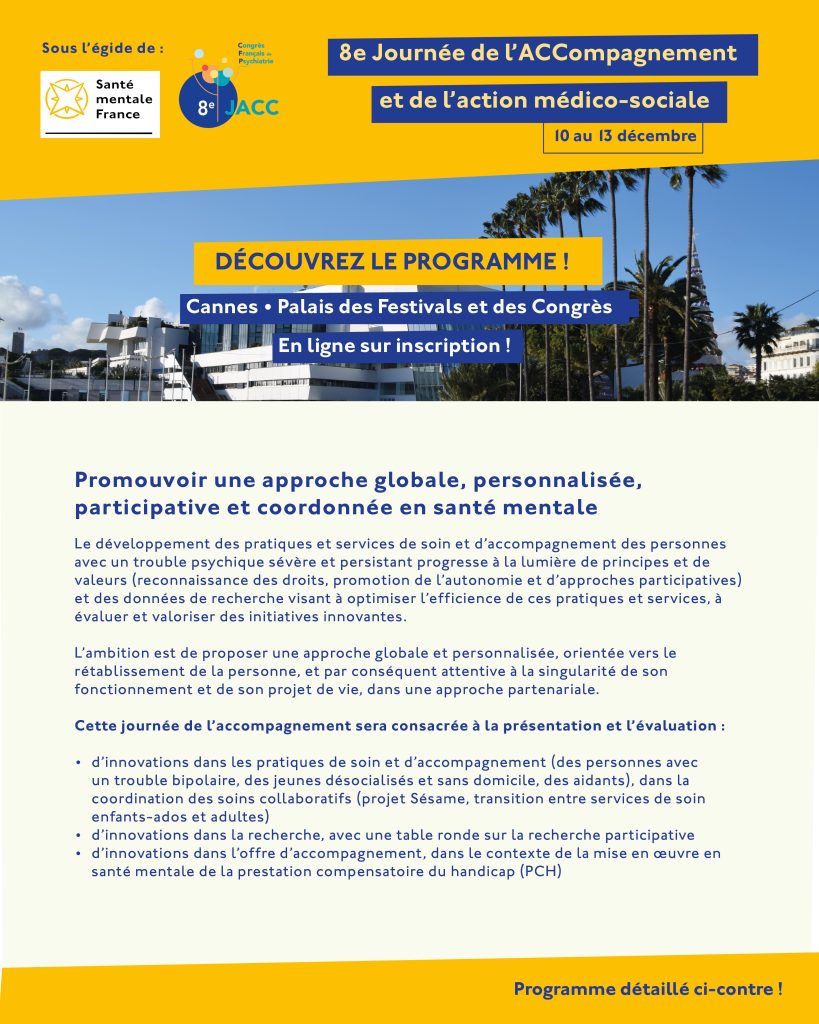 Retour aux actualitésOrganisée sous l’égide de Santé mentale France, la JACC a pour objectif de créer des synergies entre les secteurs sanitaire, social et médico-social, promouvant ainsi une approche inclusive et holistique de la santé mentale.